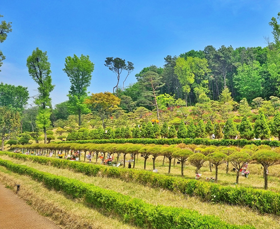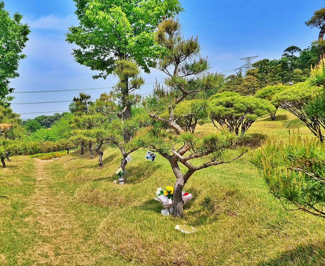 큰 소나무 아래 일정한 간격으로 단을 나누어