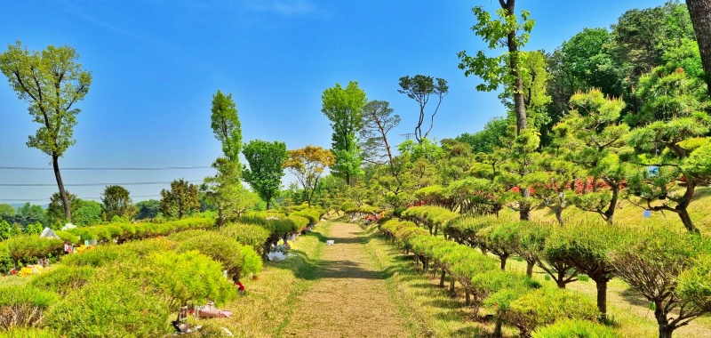 큰 소나무 아래 일정한 간격으로 단을 나누어