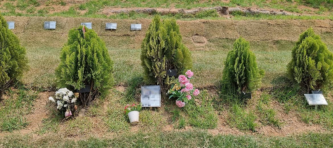 4. 잔디때위에 비석 또는 표지석을 올린다.